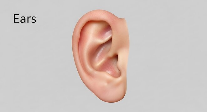 Detailed external human ear anatomy featuring pinna helix and lobule medical illustration
