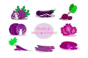 Purple fruits and vegetables isolated on white background.