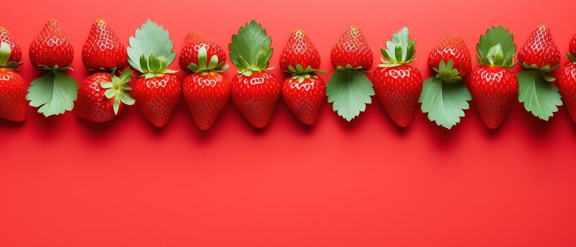 raw ripe red strawberries on red table background with blank copy space, fruit antioxidant and anthocyanin healthy benefit concept, Generative Ai
