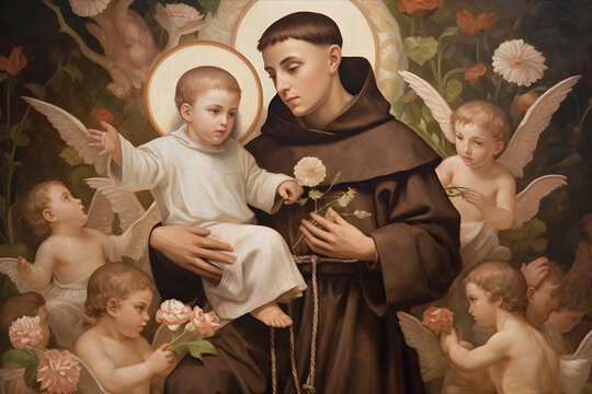 Saint Anthony of Padua religion faith holy illustration. St. Anthony. Patron Saint of Lost Items. With Child Jesus.