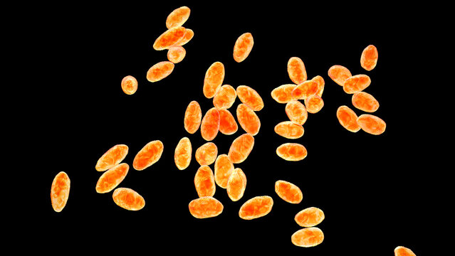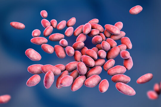 Brucella anthropi, formerly Ochrobactrum anthropi, an emerging opportunistic pathogen capable of degrading pharmaceuticals like Piracetam, 3D illustration. Rod-shaped, Gram-negative bacterium.
