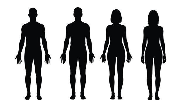 Human Body Silhouette Set. Full-Length Front View of Standing Male and Female Figures. Vector Illustration