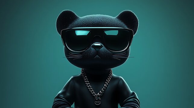 digital illustration featuring a stylized anthropomorphic black panther character depicted wearing oversized black sunglasses and a black hoodie, giving it a modern and trendy appearance