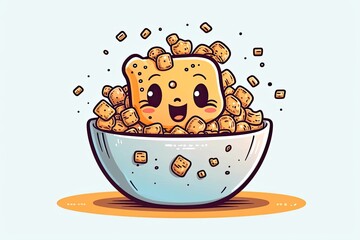 happy bowl of cereal with a cheerful expression. Generative AI