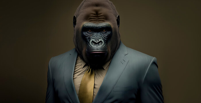 Gorilla dressed in a formal business suit. anthropomorphic businessman. Generative AI