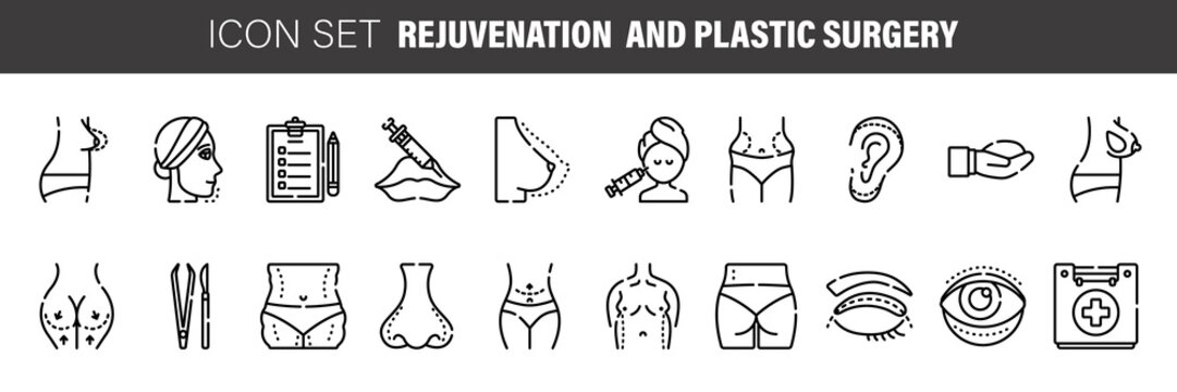 Medical: Cosmetic surgery icon set. Included the icons as faec, facial, beauty, aging, eye, and more.