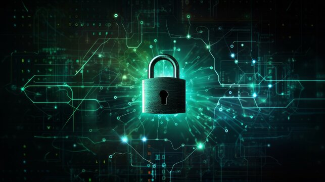 Lock digital background, cyber security symbol. Neural network AI generated art