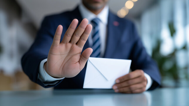 Lawyer refuses to accept bribe from business people in contracting. Corruption and anti bribery concept..