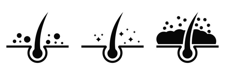 Anti Dandruff Treatment Icon Set – Hair Care Line Symbols for Shampoo and Cosmetic Packaging Design
