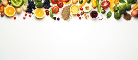 Variety of fresh whole unprocessed food healthy nutrition anti inflammatory diet products top view. Creative Banner. Copyspace image