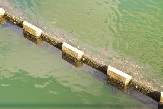 Floating anti pollution barrier in modular plastic elements