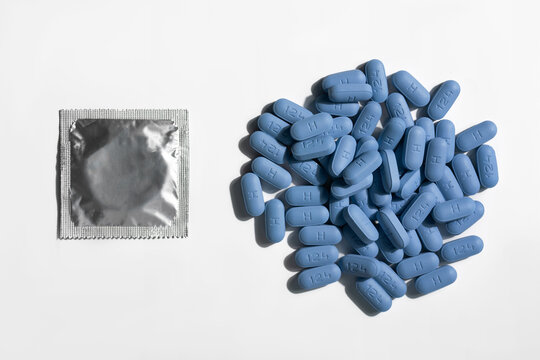 Close up of different pills for the hiv infection treatment. PrEP Pills for Pre-Exposure Prophylaxis to help protect people from HIV.