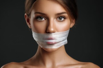 Woman s mouth taped shut silenced voice oppression democracy freedom and rights