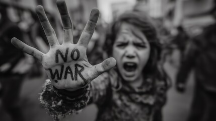 Anti war and peace concept, Anti-war message created with floral letters in a soft color palette.