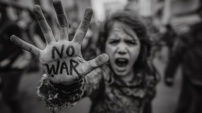 Lettering STOP WAR hand drawn in chalk on a school blackboard.