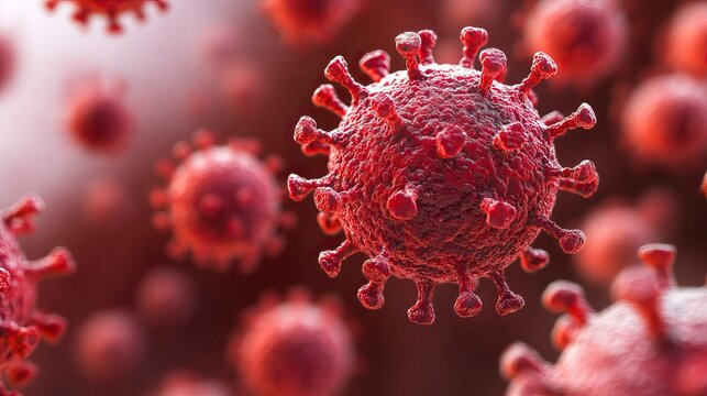 Detailed depiction of red blood cells and viruses, highlighting the complexity of human biology and disease interaction.