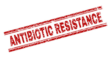 ANTIBIOTIC RESISTANCE seal print with corroded texture. Red vector rubber print of ANTIBIOTIC RESISTANCE text with corroded texture. Text title is placed between double parallel lines.