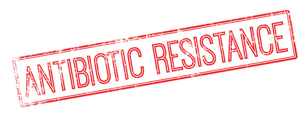 Antibiotic resistance red rubber stamp on white