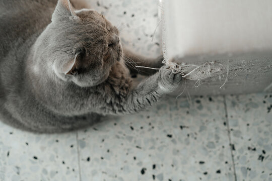 British Cat's Misadventure with Torn Furniture and Claws.