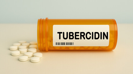 Box of TUBERCIDIN tablets on a hospital pharmacy table used to study antiviral and anticancer activity a nucleoside analog.