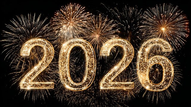 Celebrate 2026 with stunning golden fireworks, perfect for New Year's Eve promotions and exciting event announcements, radiating joy and anticipation
