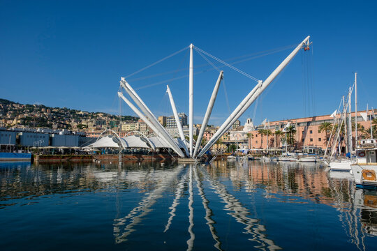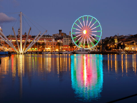 Ferris wheel at the marina of Genoa, Liguria, Italy. Marina in the "Porto Antico" of Genoa.