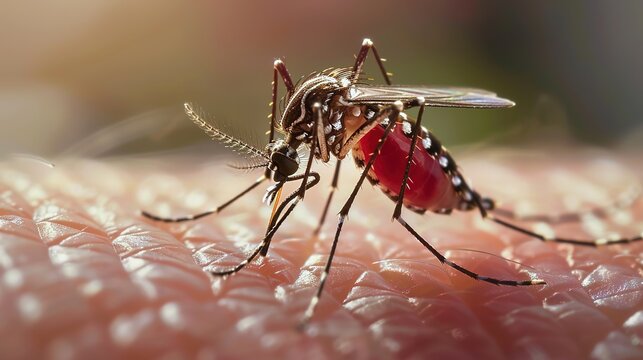 Mosquitoes sucking blood is a common biological phenomenon primarily observed in female mosquitoes, as they require blood meals to obtain essential proteins and iron for egg developmen