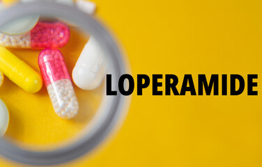 Amber bottle with yellow pills for common summer illnesses, travel health awareness. Includes antidiarrheal medication tips for safe foreign holidays. Prevention, treatment advice for diarrhea