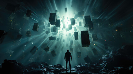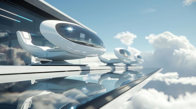 Floating workstations use antigravity technology to create dynamic, customizable office spaces in the sky, Sharpen close up strange style hitech ultrafashionable concept