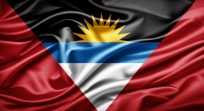 Antigua and Barbuda flag with silk texture and vibrant colors.
