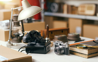 BARCELONA, SPAIN - MAY 09, 2018. Antiquary dealer shop in Barcelona.