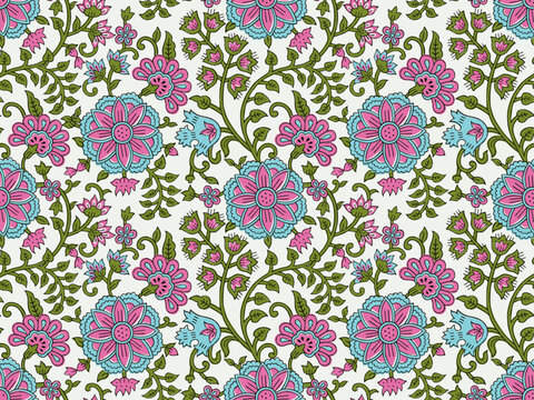 HAND DRAWN MUGHAL FLORAL JAIPUR PRINTS SEAMLESS PRINT DIGITAL PATTERN