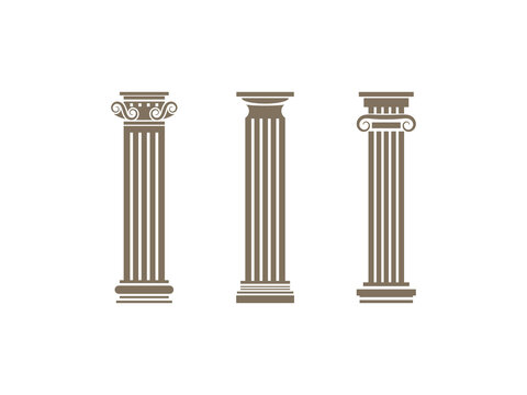 Roman column set, Greek pillar Ancient architecture, Greece Antique Doric, Ionic, Corinthian columns. Roman column set, Greek pillar, Ancient architecture