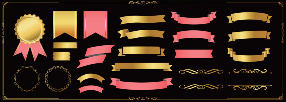 Gold photo frame. Set of Decorative vintage frames and borders set. Border design..eps