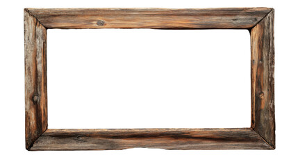 Old, weathered, cracked wooden picture frame with transparent background, creating a rustic and vintage feel