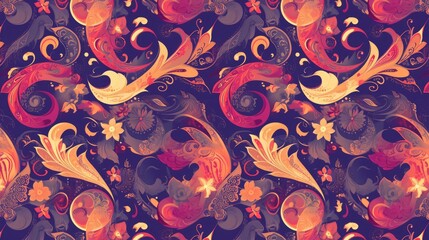 Colorful stylized hyroglypgic writing repeatable graphic border background- illustration.