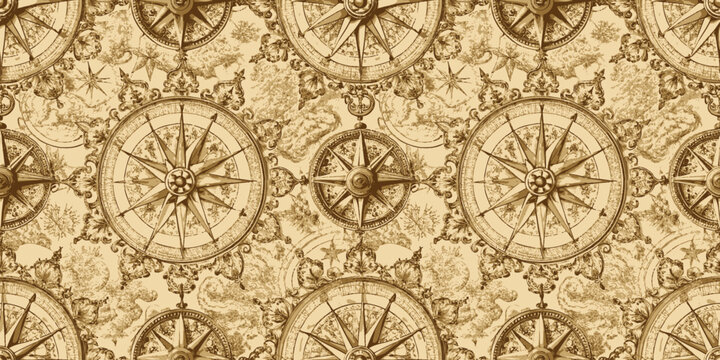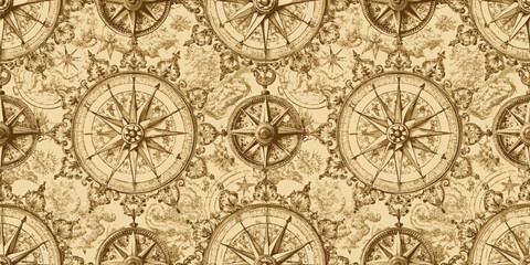 Vintage compass pattern in sepia tones creating a classic nautical vibe.