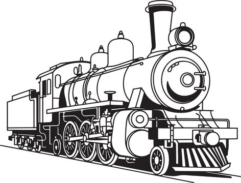 Hand drawn moving retro train, sketch illustration. Vintage railway steam locomotive in style of old engraving