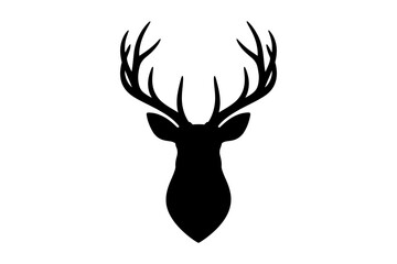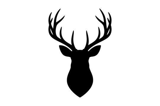 Silhouette of a deer head with large antlers shown
