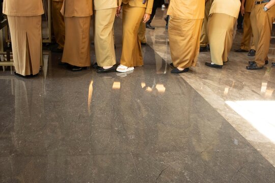PeoPeople in the hall queued to take somethingple in the hall queued to take food