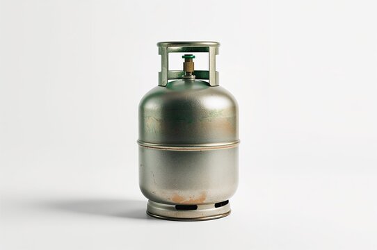 3 kg LPG fuel tank with white backdrop, kitchen, green, cooking, energy, metal, vintage