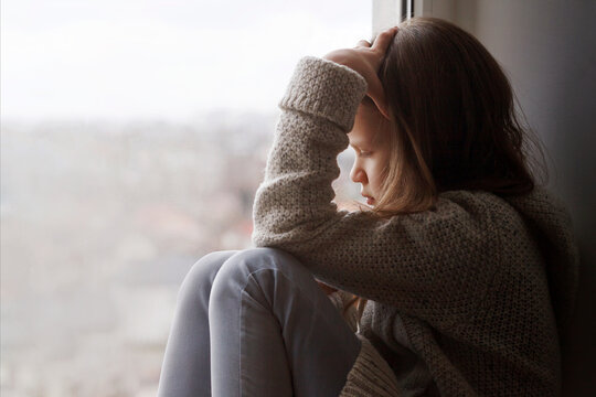Stress, anxiety and hands of nervous person with worry, fear or abuse in closeup, home or danger. Depression, lonely and scared victim with phobia, mistake or emotional crisis with gesture or trauma