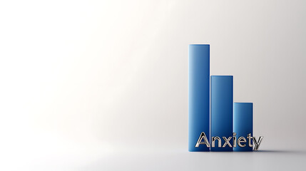 Visual representation of decreasing anxiety. Blue graph bars diminish in height, the word "Anxiety" is presented in silver and reflects the concept of fading concerns.