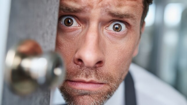 Nervous and panicked mature man sitting at home anxiously waiting for someone to come.