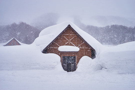 Wooden house at Hakkoda ropeway in Mount Tamoyachi with snowy time at Aomori, Japan.