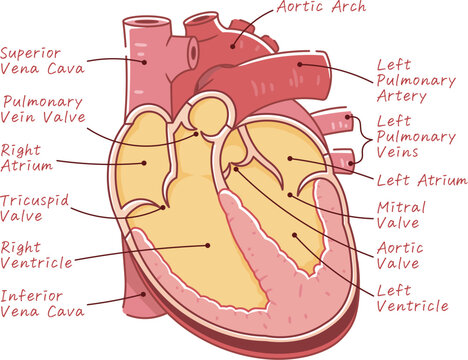 Structure of the heart valves. Mitral valve, pulmonary valve, aortic valve and the tricuspid valve.