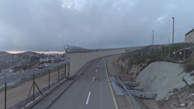 Aerial footage of the separation wall between Israel and the Palestinian Authority in Jerusalem