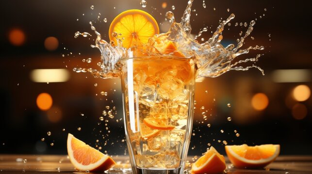 Generative AI and digital editing create a splashing Aperol spritz cocktail. Generative AI