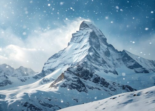 A snowy peak icon with snowflakes falling.