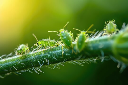 Aphid Insects, Greenfly On Plant, Small Garden Parasite Animals, Aphids Pest Colony Closeup